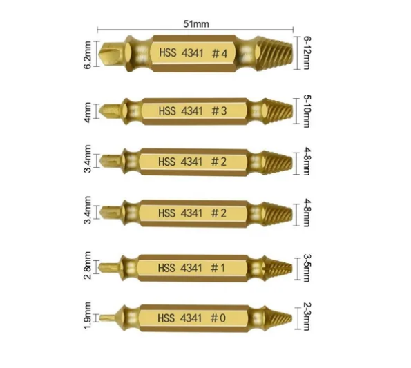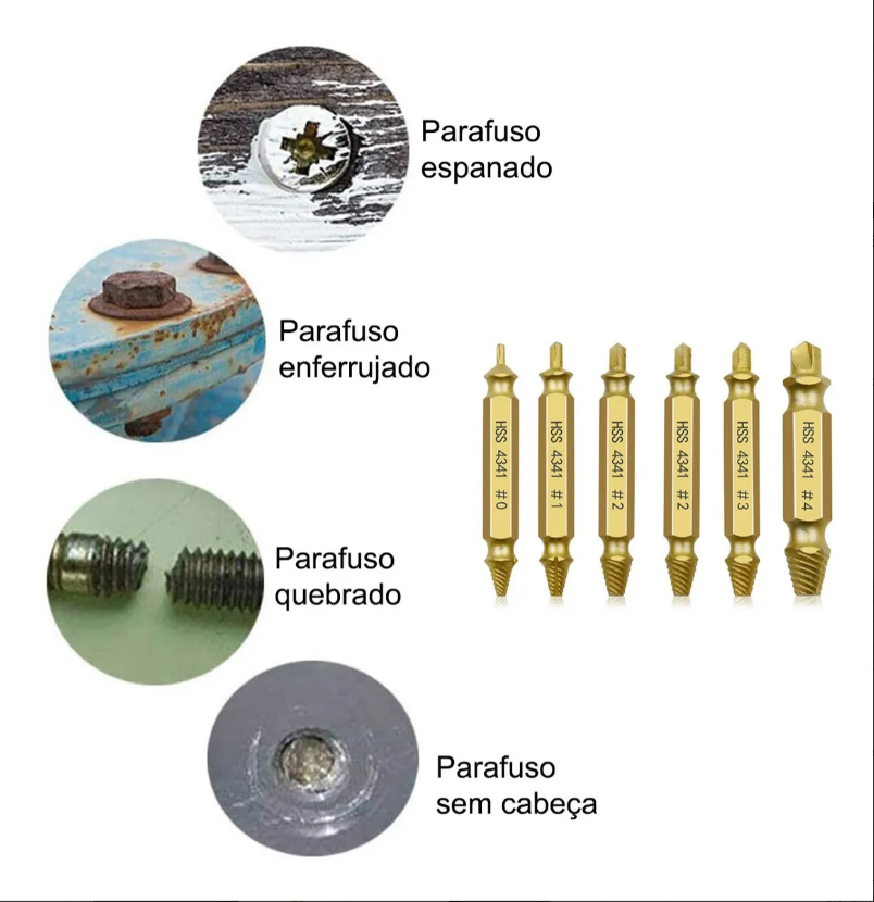 Com este kit de 6 extratores de parafusos, você não precisa perder tempo nem paciência. Basta encaixar o bit certo, girar, e pronto: o parafuso “encrenqueiro” sai rapidinho.