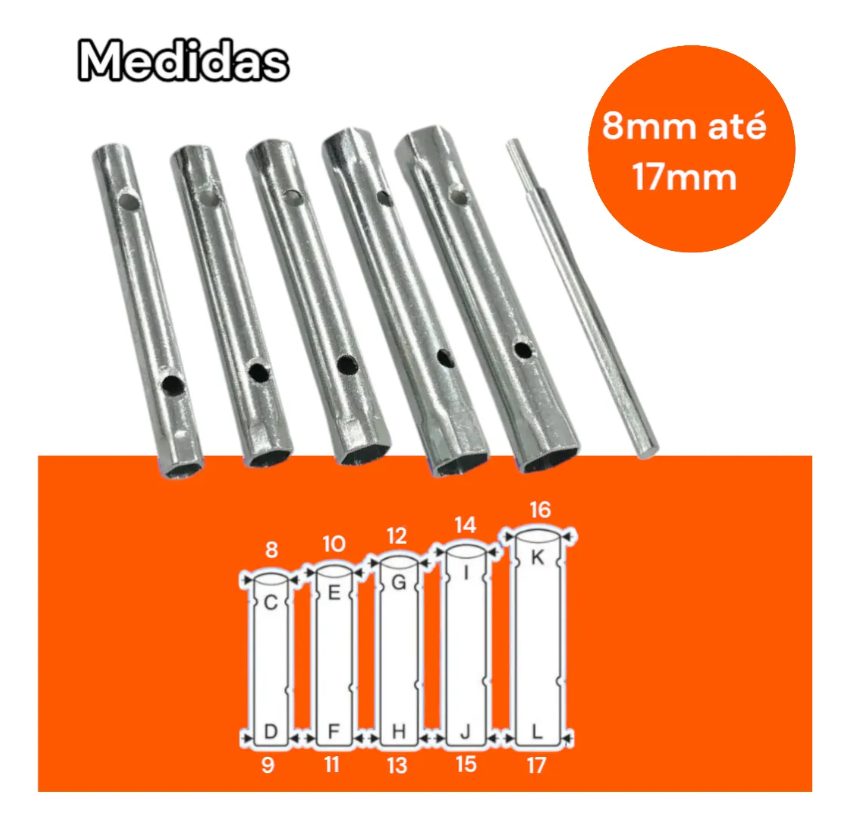 • ? Soquetes nos tamanhos: 8 mm, 10 mm, 12 mm, 14 mm e 17 mm