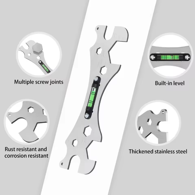 A Chave F-572 da Saint Plus é uma solução multifuncional para quem precisa instalar ou alinhar torneiras, registros, válvulas, conexões e outras peças hidráulicas com precisão e rapidez. Fabricada em aço de alta resistência, ela combina várias bocas de chave com um nível de bolha integrado, garantindo instalação reta e bem ajustada.