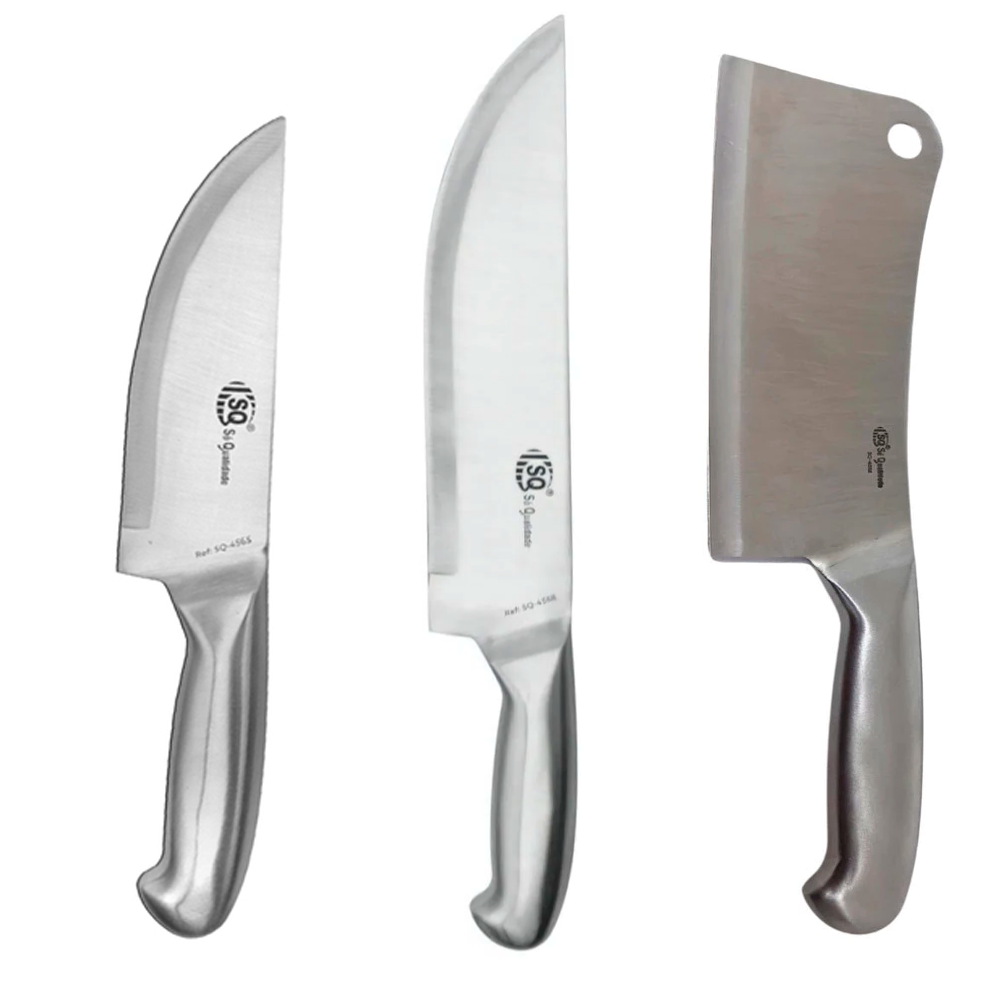 Faca e Cutelo Profissional Inteiriços em Aço Inox Polido – Linha Texas SQ